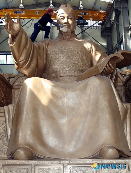 이렇게 옮겨진 동상은 이순신장군 동상에서 북쪽으로 210m 정도 뒤쪽에 설치되며 9일 한글날을 맞아 제막식을 하고 난 뒤 일반에 모습을 드러낼 예정이다..